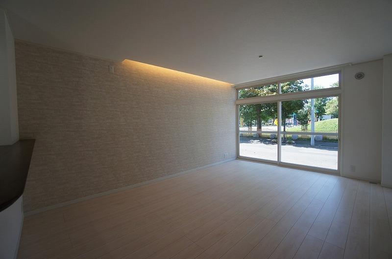 キッチンは基本オープンな形で配置。リビングの窓からは公園の木々が望めます。
