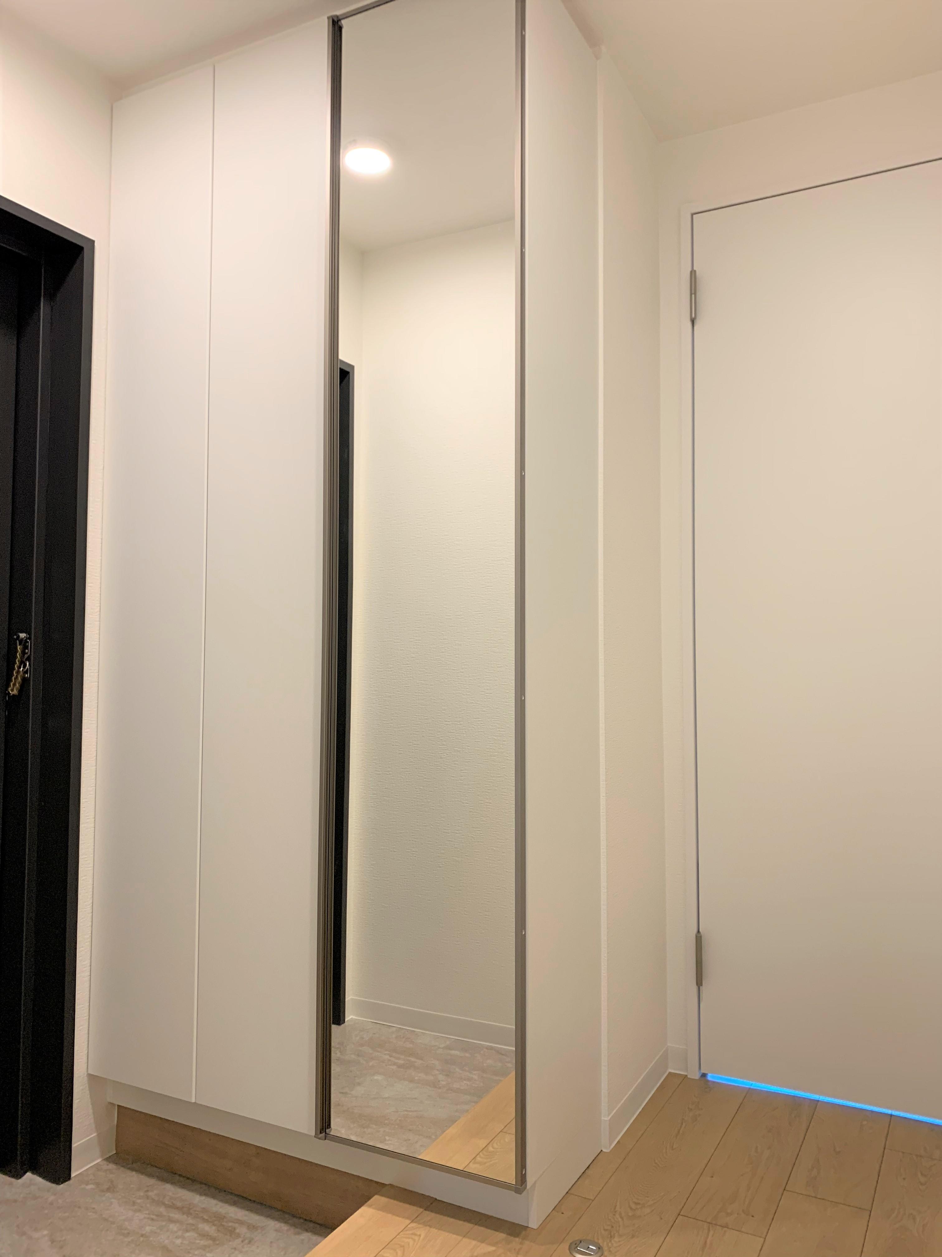 【玄関】トールサイズのシューズクローゼットへ変更!姿見も新設したので、お出かけ前のチェックもばっちりですね♪